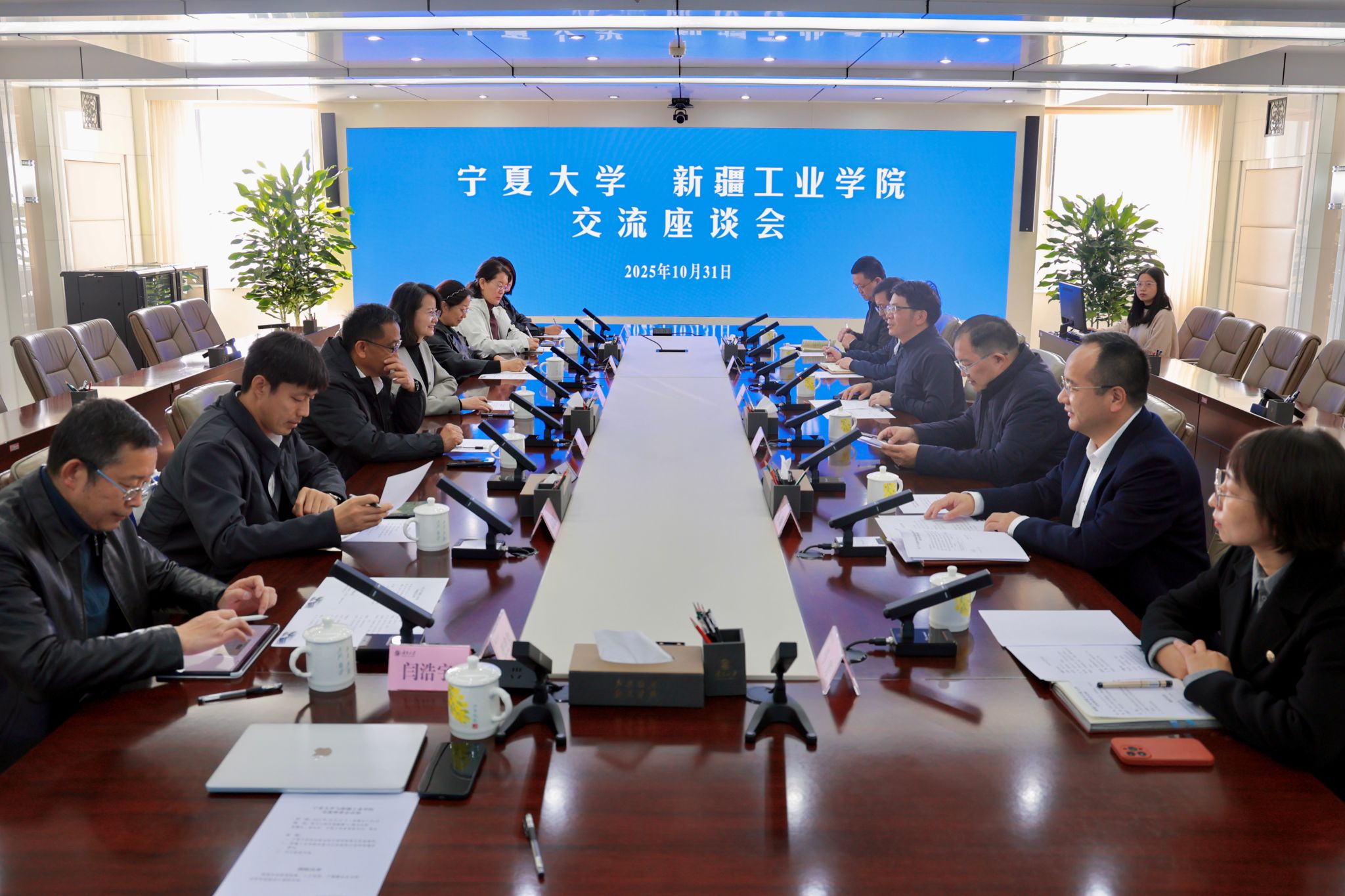 王宏伟对孙桂香一行的到访表示热烈欢迎,并全面介绍了宁夏大学的办学定位、学科布局与发展成效。他表示,宁夏大学与新疆工业学院均肩负着服务国家战略需求、推动区域教育高质量发展的重要使命,希望以此次调研为契机,建立健全常态化交流合作机制,加强资源共享、优势互补,携手为服务国家西部大开发战略、促进区域经济社会高质量发展贡献高校力量。