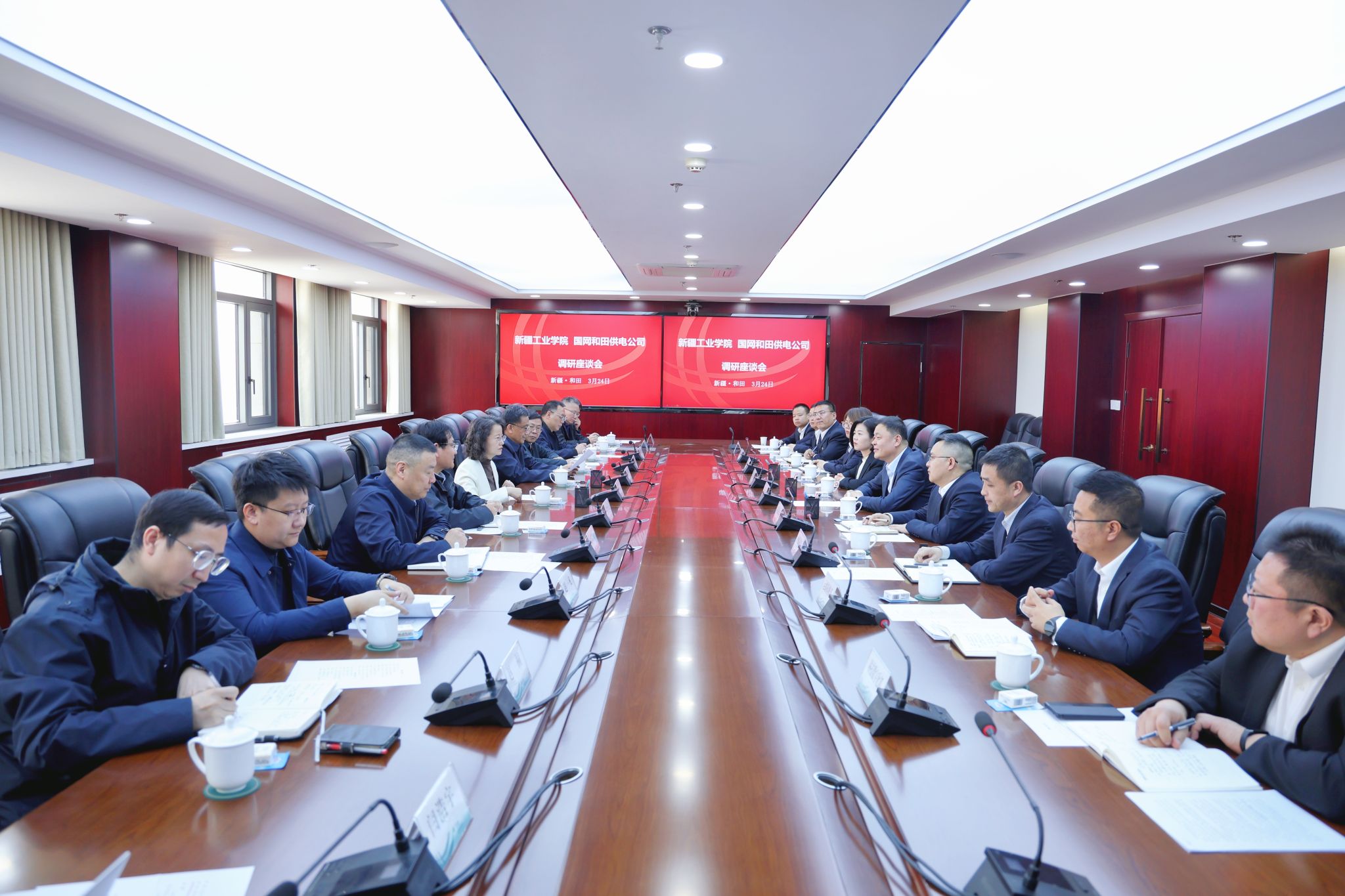 国网和田供电公司副总经理、党委委员赵建光,总会计师、党委委员张美娜,校党委常委、副院长黄明勇,双方相关部门负责同志参加调研活动。